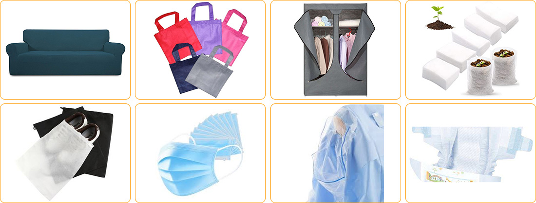 Səhiyyə sahəsində: maskalar, cərrahi xalatlar və qoruyucu geyimlər, dezinfeksiyaedici çantalar, sanitar salfetlər və uşaq bezləri, birdəfəlik gigiyena paltarları