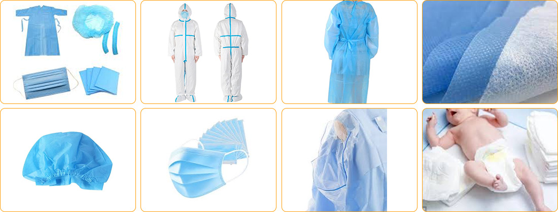 Spunbond Meltblown toxunmamış maşın adətən körpə və böyüklər uşaq bezləri və ya cərrah maskaları kimi gigiyena və tibbdə istifadə olunur.